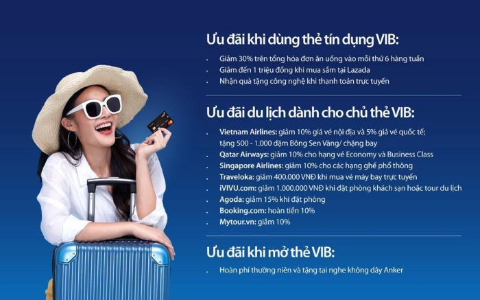 Đón đầu nhu cầu sử dụng thẻ tăng cao trong dịp cuối năm, VIB tăng mạnh các ưu đãi cho khách hàng khi mở thẻ mới. Khách hàng sẽ được hoàn phí thường niên năm đầu nếu thỏa điều kiện chi tiêu thẻ 1-20 triệu đồng và trọn đời nếu chi tiêu 60-100 triệu đồng (tùy vào dòng thẻ) trong 30 ngày mở thẻ, đồng thời nhận thêm tai nghe không dây Anker cho giao dịch 1 triệu đầu tiên.