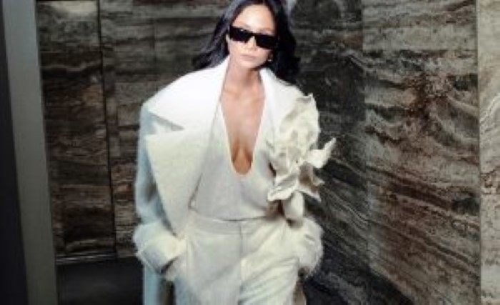 H’Hen Niê không ngại “thả rông”, phô diễn thần thái sắc lạnh của trong một thiết kế phóng khoáng mang cảm hứng menswear, với chất liệu 100% cashmere