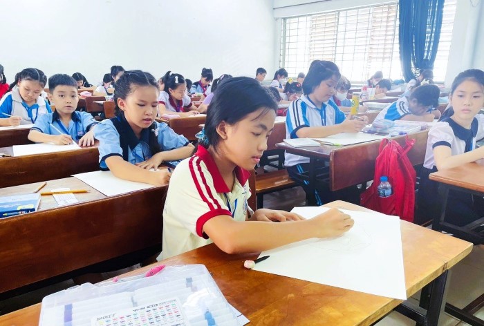 Các em học sinh đang thực hiện tác phẩm dự thi của mìnhSự kiện diễn ra tại Trường Đại học Kiến trúc TP.HCM đã thu hút hơn 600 em học sinh các trường tiểu học, trung học sơ sở, trung học phổ thông trên địa bàn thành phố tham gia.