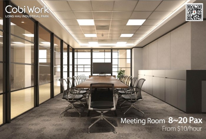 Phòng họp với diện tích rộng rãi có sức chứa từ 8~20 người, cùng các thiết bị chuyên dụng phục vụ cho cuộc họp. Khả năng cách âm tốt cũng giúp bảo mật thông tin và tài liệu quan trọng của doanh nghiệp.