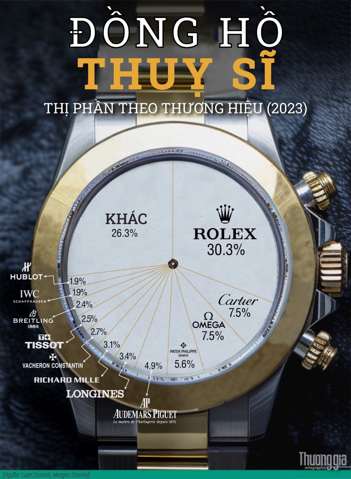 Trong khi Rolex và công ty chị em Tudor chiếm 1/3 doanh số bán hàng trên thị trường đồng hồ Thụy Sĩ, điều đáng chú ý là các tập đoàn lớn như Swatch và Richemont chỉ chiếm một phần ba còn lại trong tổng số.