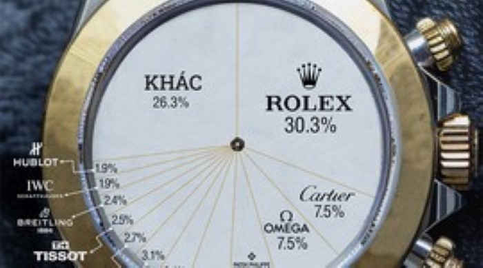 Trong đó, doanh số đồng hồ Rolex lần đầu tiên vượt 10 tỷ franc Thụy Sĩ (11,2 tỷ USD), vượt xa đáng kể các đối thủ như Cartier với CHF 3,1 tỷ USD (3,5 tỷ USD) và Omega với CHF 2,6 tỷ USD (2,9 tỷ USD).
