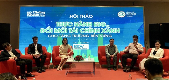 Nhằm cung cấp thông tin đầy đủ về quy định hiện hành và các giải pháp thực hiện hiệu quả ESG cho các doanh nghiệp, ngày 26/7/2024 Tạp chí điện tử Kinh tế – Chứng khoán Việt Nam phối hợp với Liên chi Hội Bất động sản công nghiệp Việt Nam (VIREA) tổ chức Hội thảo “Thực hành ESG và đổi mới tài chính xanh cho tăng trưởng bền vững” với sự góp mặt của các chuyên gia hàng đầu về lĩnh vực ESG và các Đại diện doanh nghiệp đã có kinh nghiệm trong việc triển khai thực thi bộ tiêu chuẩn ESG tại Việt Nam cùng sự đồng hành tài trợ của Ngân hàng TMCP Đầu tư và Phát triển Việt Nam (BIDV) chi nhánh Ba Tháng Hai; Công ty CP Tập đoàn CT Group và các đơn vị tài trợ liên quan.