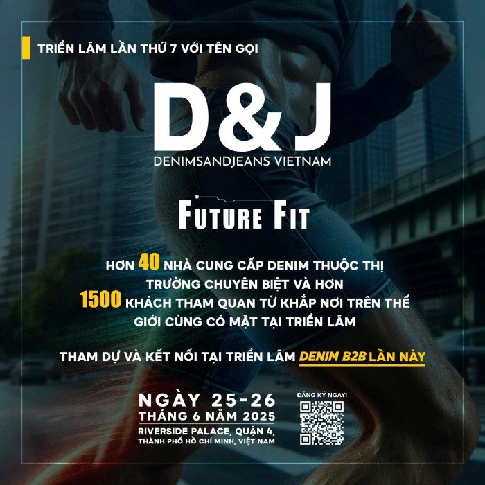 Triển lãm thương mại denim hàng đầu châu Á – Denimsandjeans Vietnam – chính thức trở lại với lần tổ chức thứ 7 tại Riverside Palace, quy tụ hơn 40 nhà cung cấp toàn cầu đến từ hơn 10 quốc gia và vùng lãnh thổ như Hồng Kông, Trung Quốc, Thổ Nhĩ Kỳ, Ấn Độ, Bangladesh…, các thương hiệu Việt Nam hàng đầu và những đơn vị đổi mới sáng tạo trong ngành để cùng nhau kết nối, chia sẻ kiến thức và thúc đẩy đổi mới thời trang bền vững với trọng tâm: công nghệ bền vững, chuyển đổi số với AI, và những cơ hội thị trường mới trong ngành denim toàn cầu.