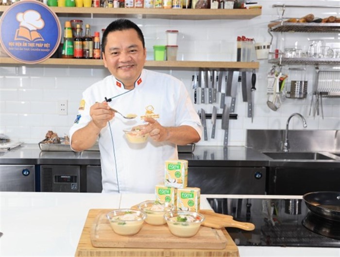 Món trứng tôm thịt hấp sữa đậu nành rất dễ làm theo công thức của đầu bếp Võ Quốc. Ảnh: NVCC