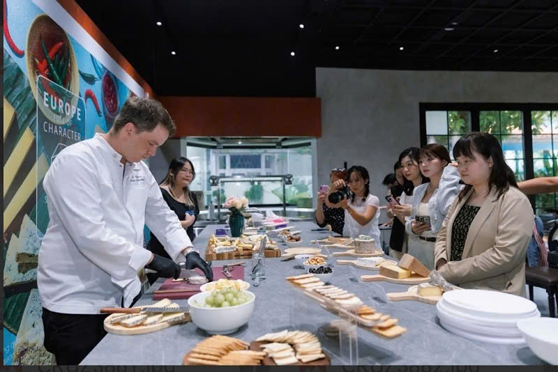 Đầu bếp OLIVIER Corticchiato đã hướng dẫn các nhà báo cũng như KOL cách trang trí một thớt phô mai với các loại phô mai Pháp có thể tìm thấy tại các chuỗi siêu thị như Annam Gourmet, Lotte Mart hay Mega Market trên toàn quốc.