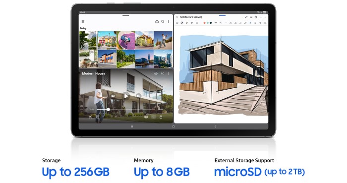 * Hiệu năng bền bỉ: Được trang bị vi xử lý nâng cấp cùng pin 8.000mAh hỗ trợ sạc siêu nhanh, Galaxy Tab S10 Lite sẵn sàng đồng hành cùng người dùng trong các phiên giải trí kéo dài, học tập và nhiều hoạt động khác.